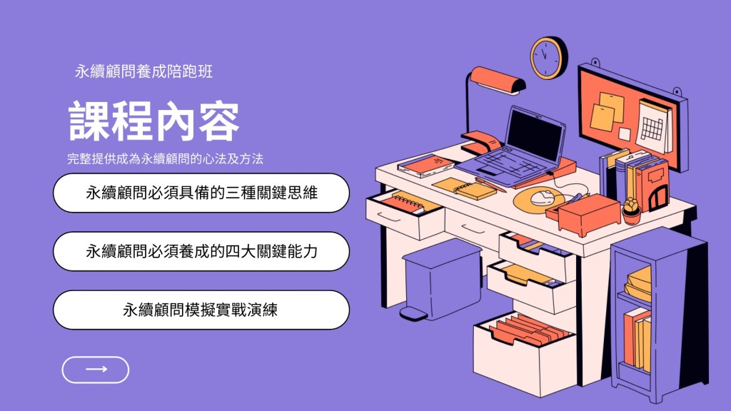 這是台灣首個專門針對永續顧問所設計的課程,整合關鍵思維養成與顧問實務技巧,帶你系統化學習,為你的永續顧問職涯奠定堅實基礎。