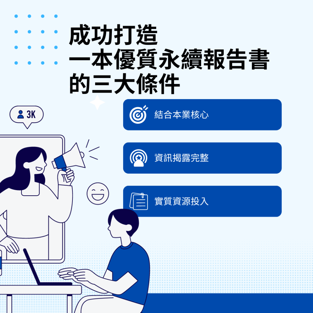 企業在撰寫永續報告書上,若滿足這三項條件不僅能使報告書更具說服力及透明度,也能有效提升企業的聲譽及形象。