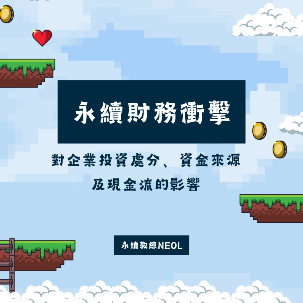 但在學習「永續財務衝擊」這個概念的時候,往往因為對於永續與財務之間關聯的不熟悉,以及對於財會相關知識的匱乏,導致學習過程一知半解。因此,教練Neol將透過本篇文章詳細探討永續風險及機會如何影響企業的財務表現,針對「投資處分」、「資金來源」與「現金流」這三大主要項目進行說明,讓讀者更輕鬆地理解永續所產生的財務影響為何,並希望能在後續導入永續揭露準則過程更為順利。