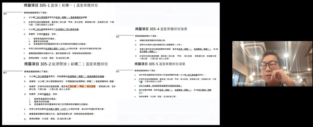 但光知道是哪一條還不夠,我不斷提醒大家:要花時間親自讀過GRI準則的原文條文。不是背誦條文,而是理解它背後的邏輯與結構,搞清楚企業為什麼要揭露這些資訊、這些資訊的揭露方式有沒有彈性、有哪些最低揭露門檻。