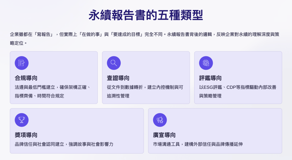 本文從顧問實務角度解析企業撰寫永續報告書的「五種目的」,協助企業找出最適策略起點。